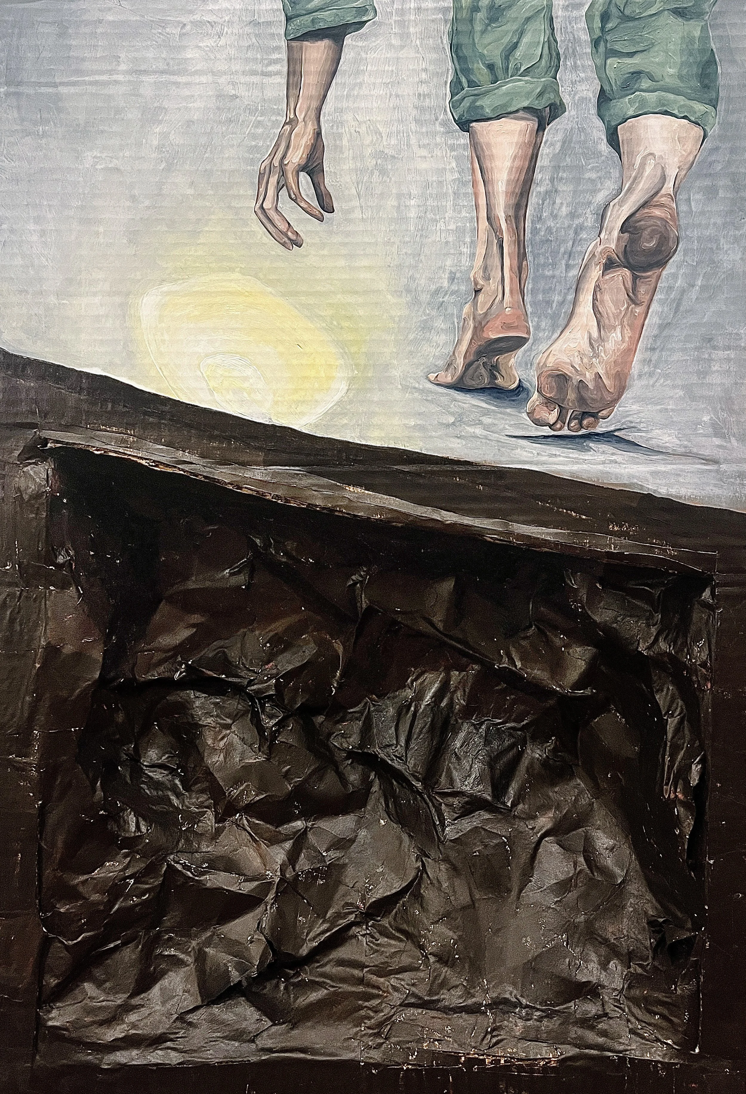 oil on paper mâché, cardboard