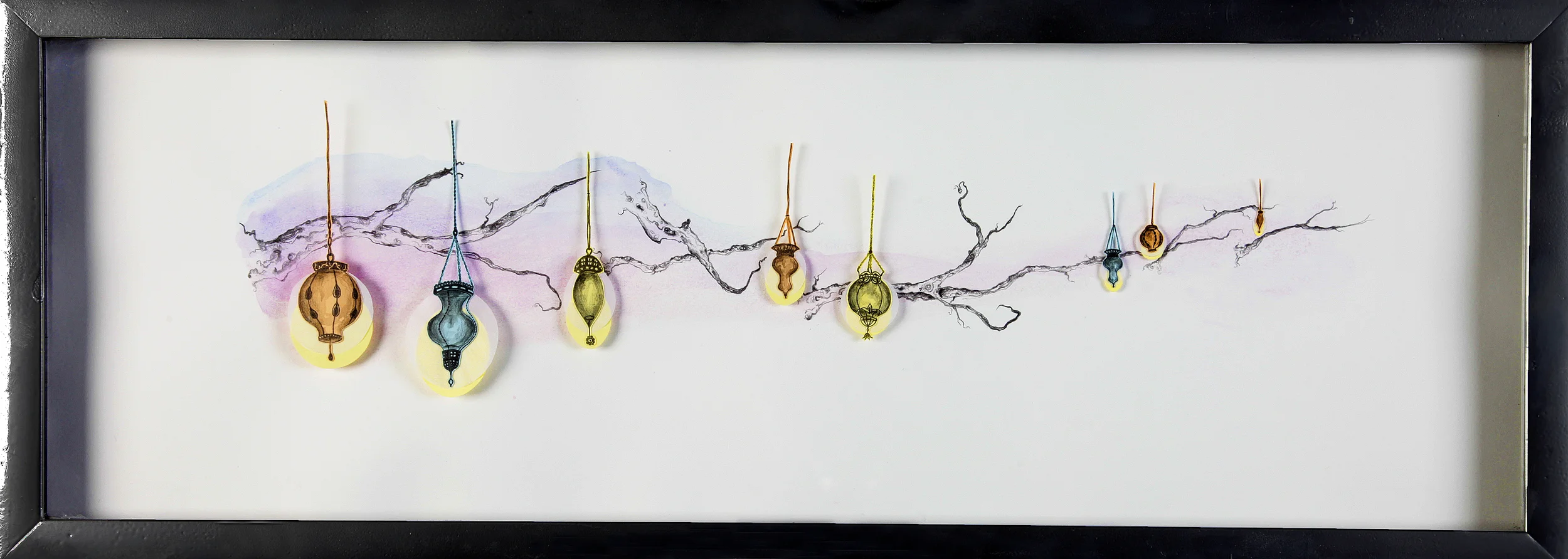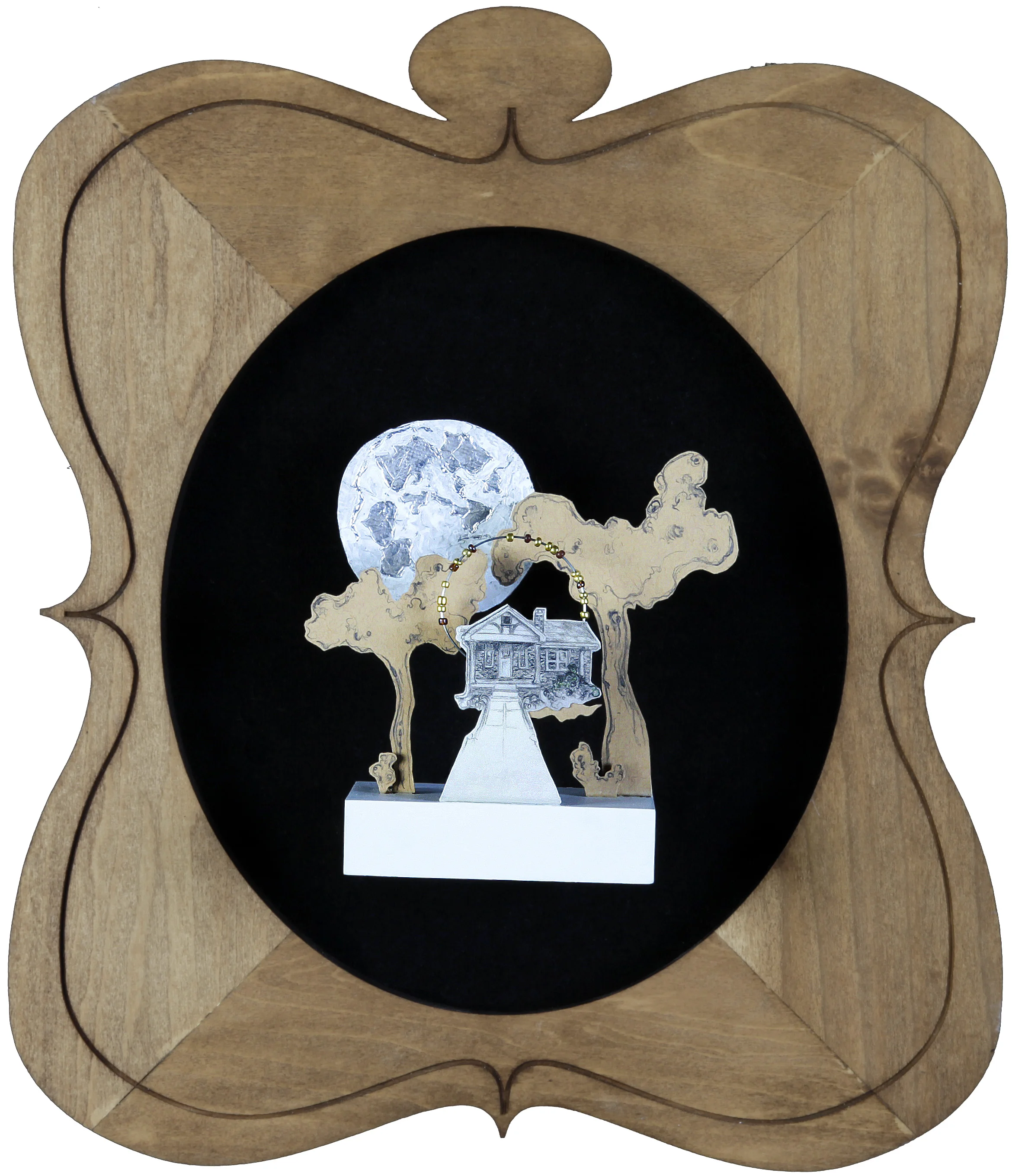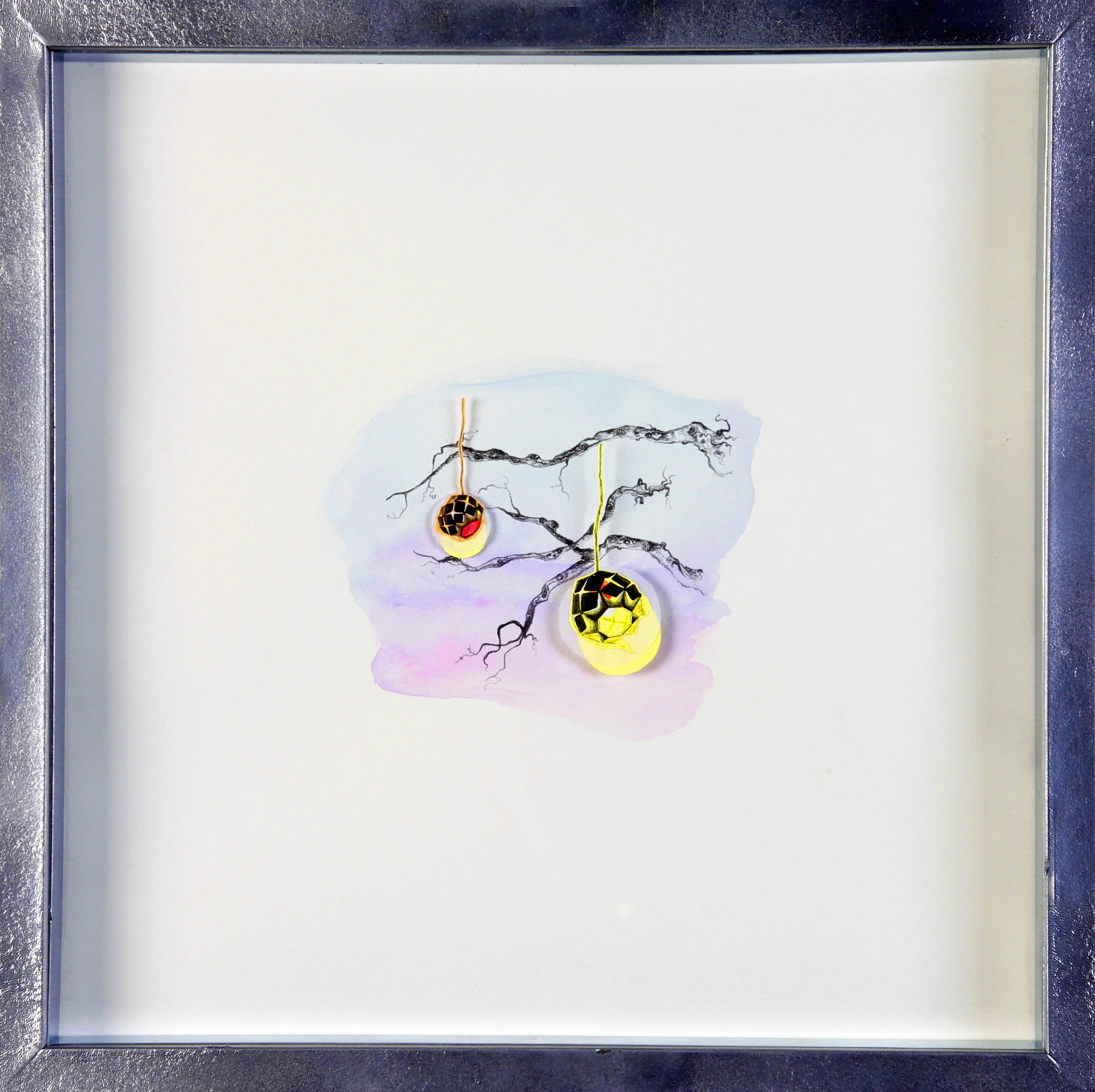 Graphite on paper, acrylic paint on aluminum, wire and beads