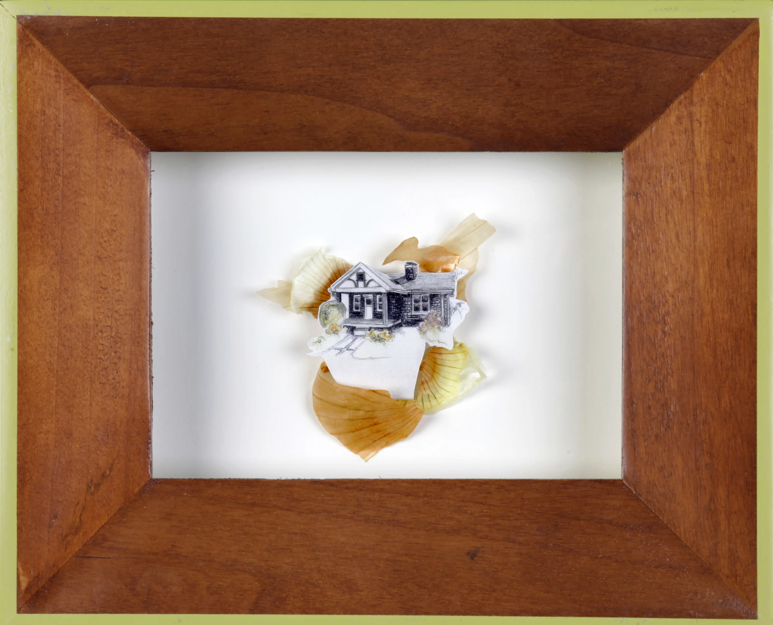 Graphite and watercolor on paper, onion peel