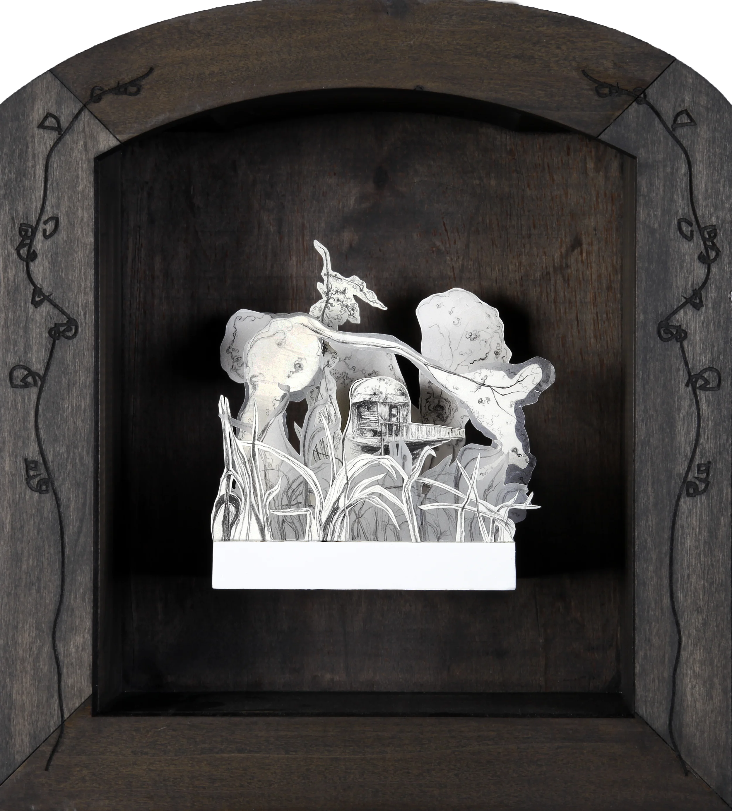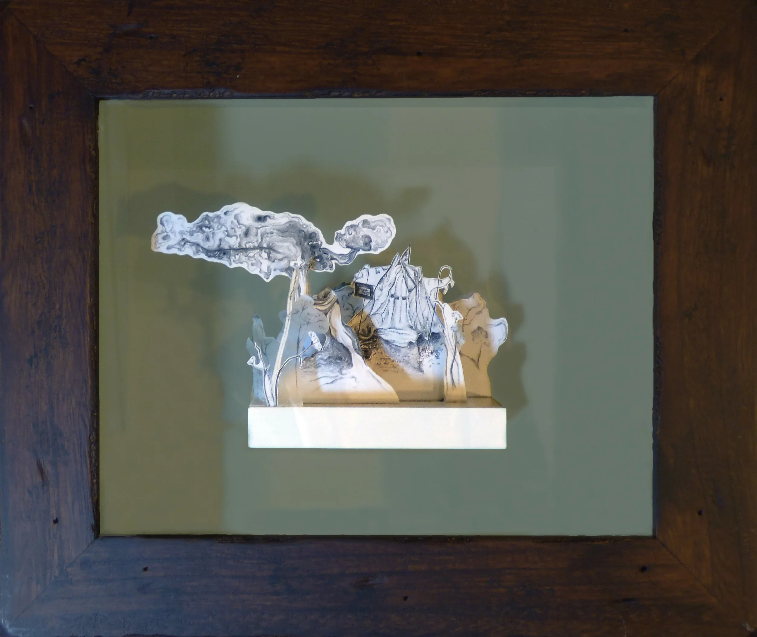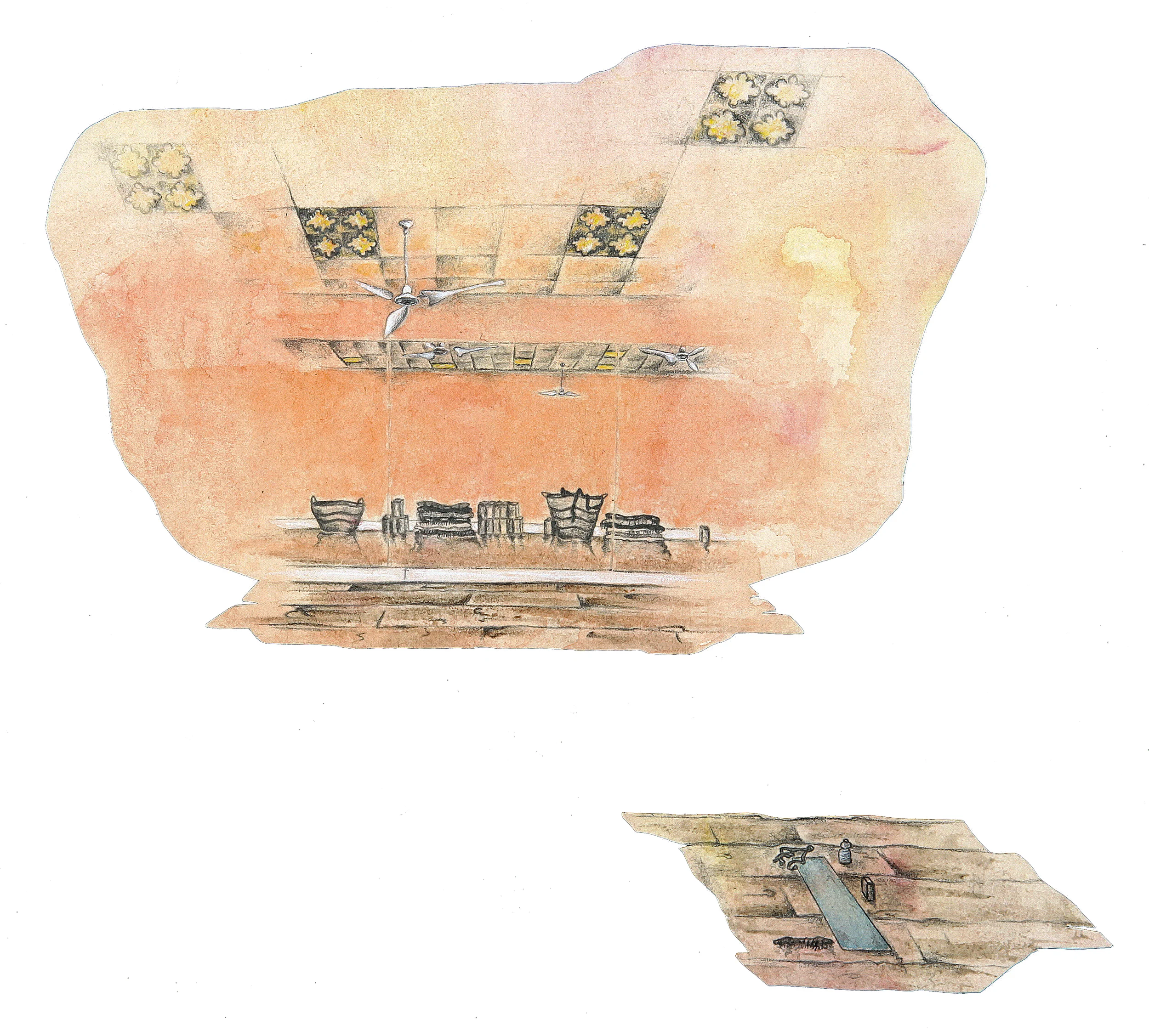 Graphite and watercolor on paper, parchment paper and wax paper