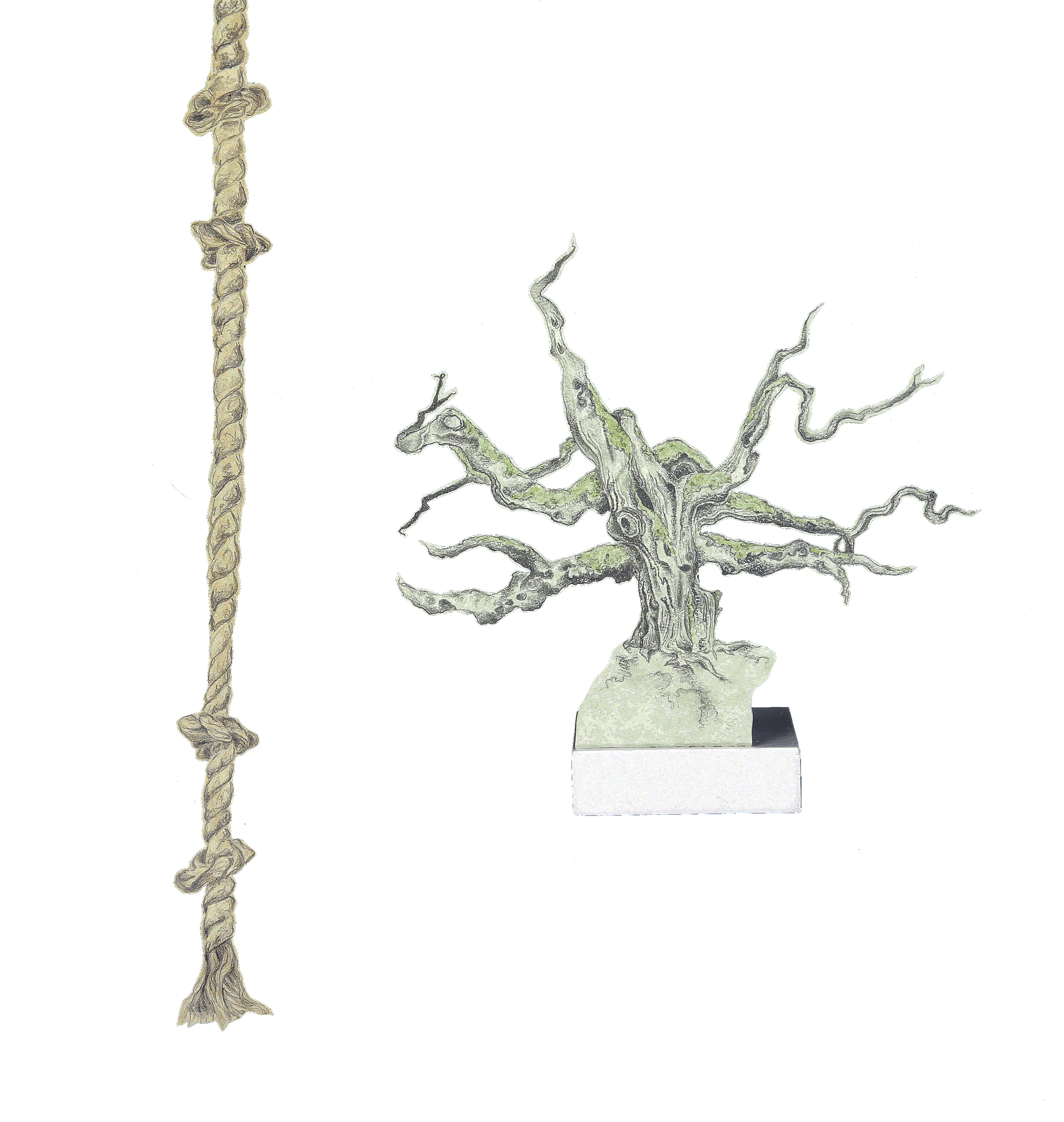 3 x 3" (tree) 4' x .5" (rope)
